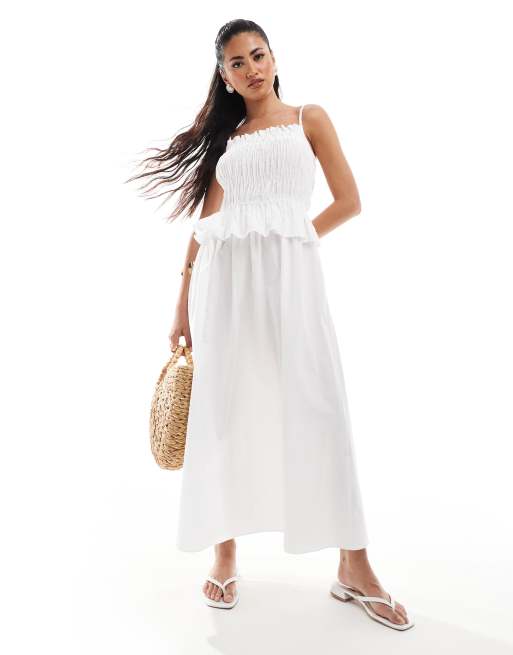 River Island - Vestito midi bianco arricciato