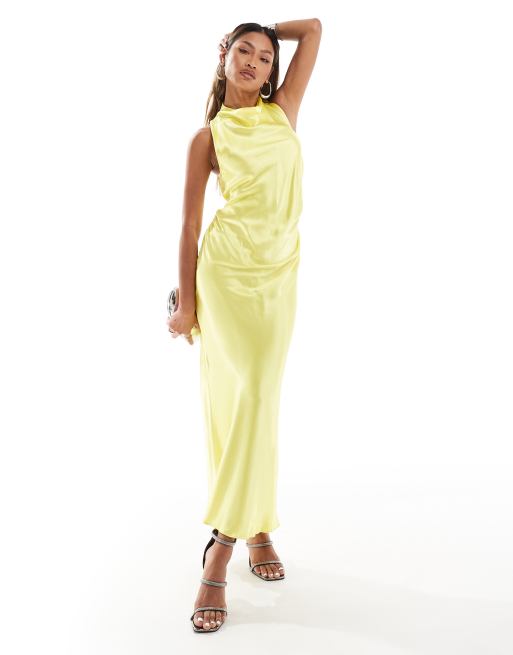 River Island - Vestito midi giallo allacciato al collo