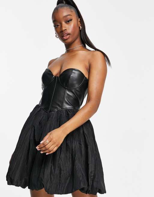 Saint Genies - Vestito nero con gonna a sbuffo e corsetto