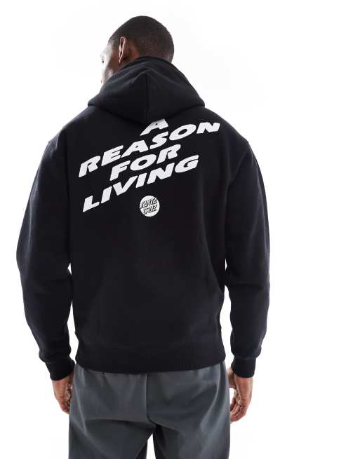 Santa Cruz - Felpa con cappuccio pesante nera con logo e stampa sul retro