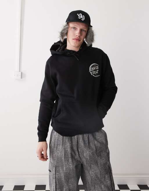 Santa Cruz - Felpa nera con cappuccio e stampa del logo con mezzaluna sul retro