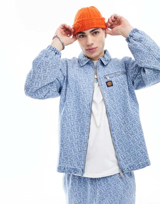 Santa Cruz - Giacca di jeans lavaggio blu medio con zip e logo in coordinato
