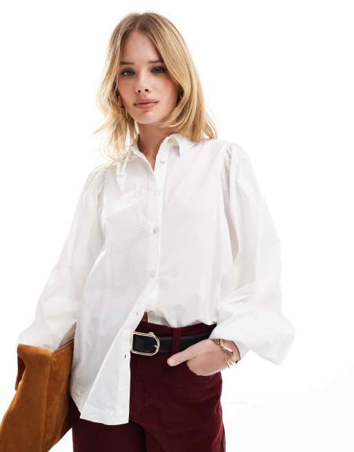 Scalpers - Camicia bianca in popeline con maniche a sbuffo