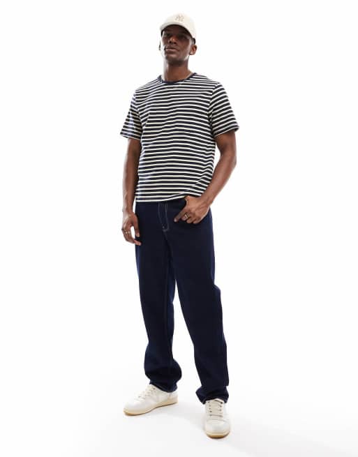 Scalpers - Icon - T-shirt blu navy scuro a righe con tasca
