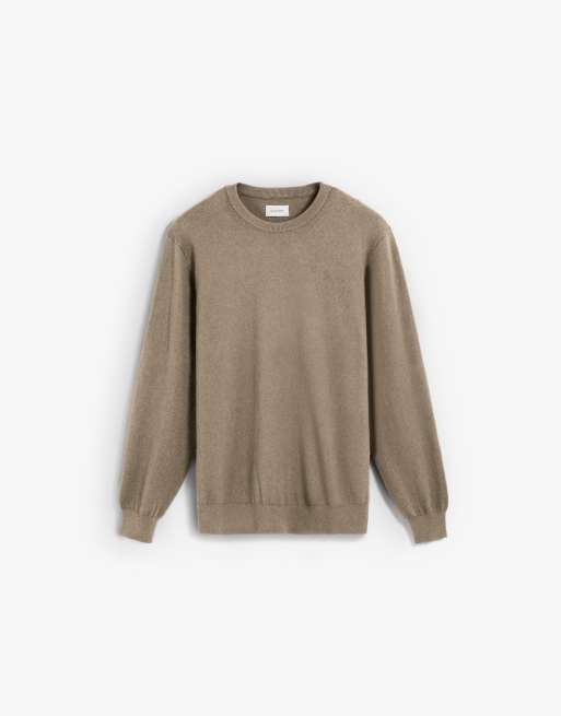 Scalpers - Maglione classico color talpa in tricot con scollo rotondo
