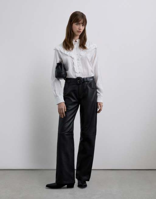 Scalpers - Pantaloni in pelle neri con pieghe