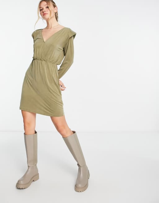 Scalpers - Vestito corto in cupro kaki a maniche lunghe