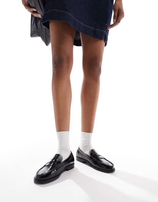 schuh - Lillian - Mocassini college neri in pelle stropicciata