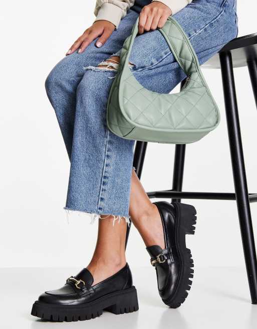 Schuh - Lilo - Mocassini in pelle nera con suola spessa