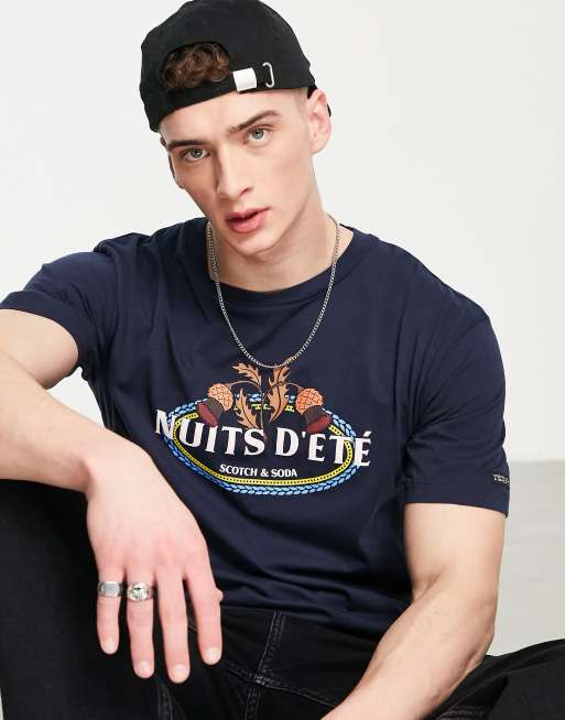 Scotch & Soda - T-shirt blu navy con stampa