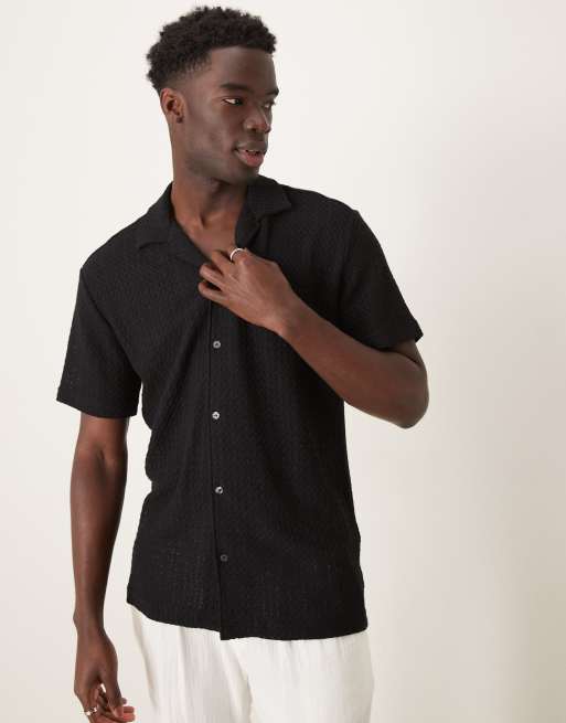 Selected - Camicia nera testurizzata con rever