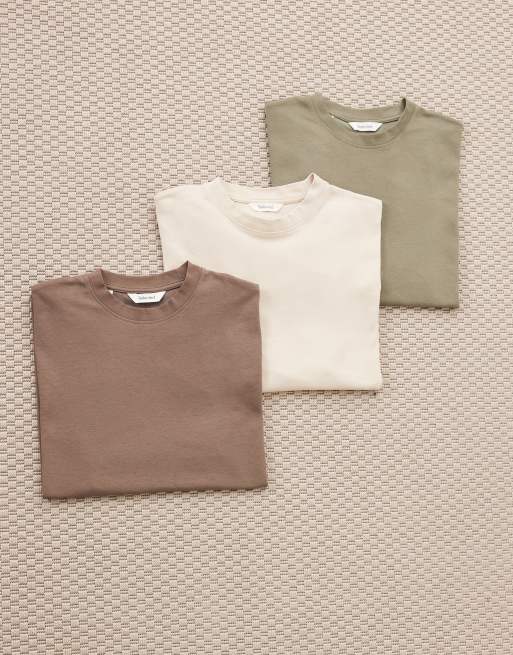 Selected - Confezione da 3 T-shirt oversize pesanti beige