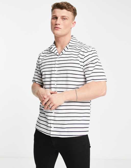 Selected Homme - Camicia bianca con righe blu navy e colletto con rever