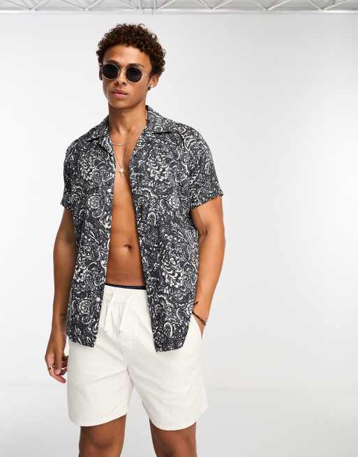 Selected Homme - Camicia blu navy con stampa cachemire e rever