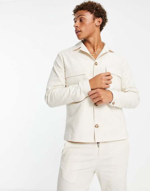 Selected Homme - Giacca squadrata in misto lino bianco in coordinato