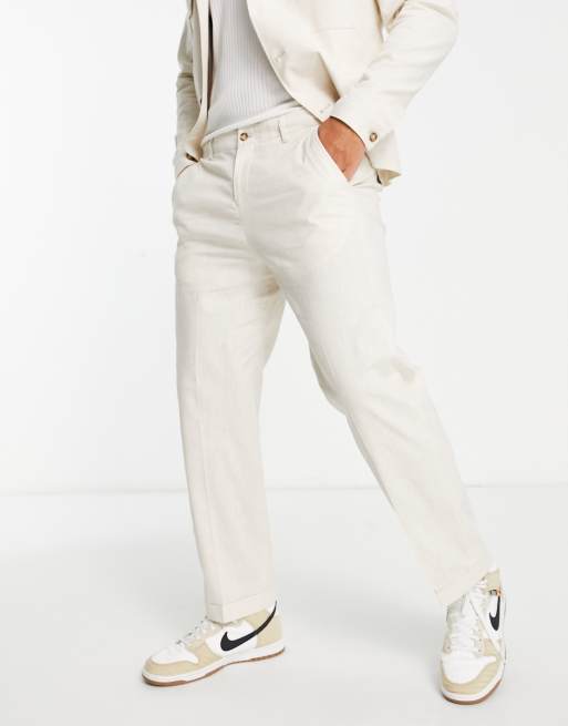 Selected Homme - Pantaloni ampi bianchi in misto lino in coordinato