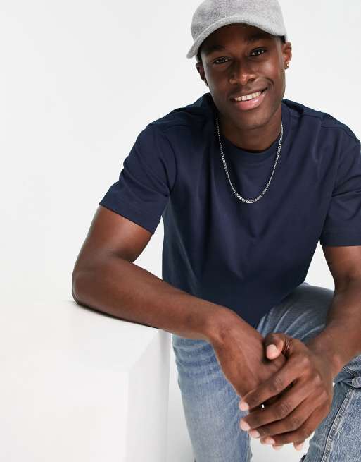 Selected Homme - T-shirt oversize in cotone pesante blu navy - NAVY