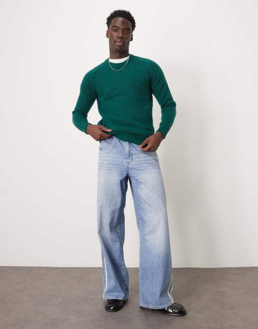 Selected - Maglione girocollo soffice verde in lana d'alpaca