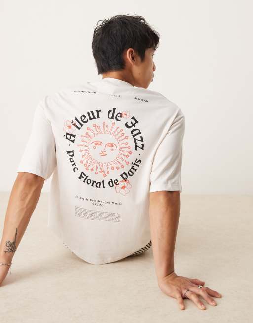 Selected - T-shirt oversize bianca con stampa di sole sul retro