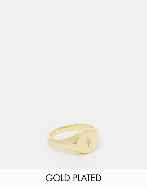 Seol + Gold - Anello a sigillo dorato arrotondato con zirconia cubica