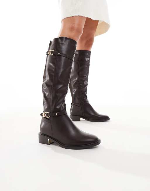 SEQWL - Latte - Stivali stile equitazione color cioccolato rifiniti con fibbie a pianta larga