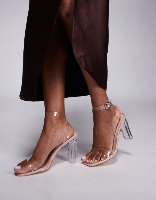SEQWL - Sandali con tacco largo a pianta larga trasparenti