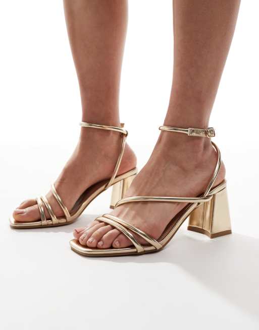 SEQWL - Sandali con tacco largo oro a pianta larga con fascette