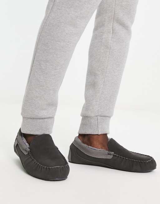 Sheepskin by Totes - Pantofole stile mocassino grigie a contrasto