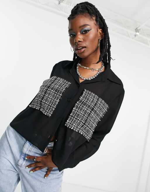 Signature 8 - Camicia in rete nera con motivo patchwork