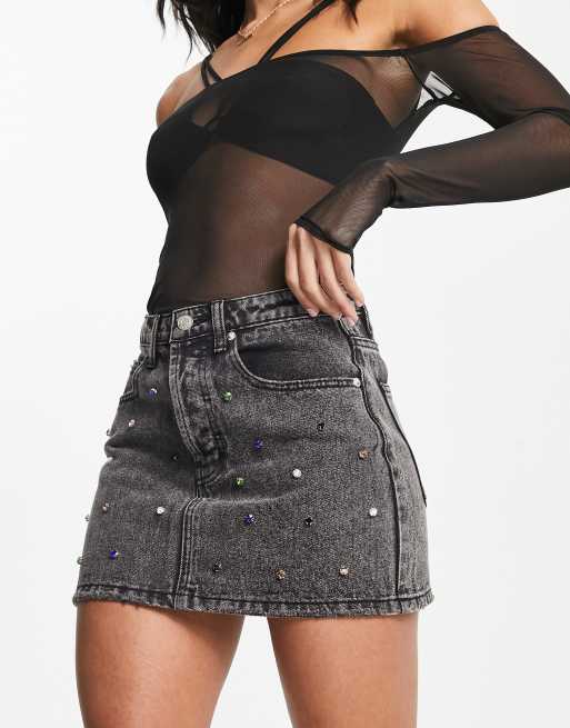 Signature 8 - Minigonna nero slavato decorata