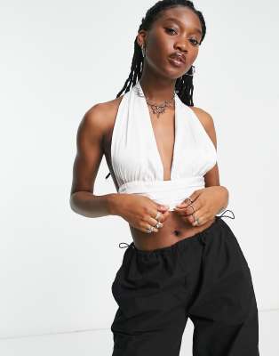 Signature 8 - Top allacciato al collo in rasatello bianco