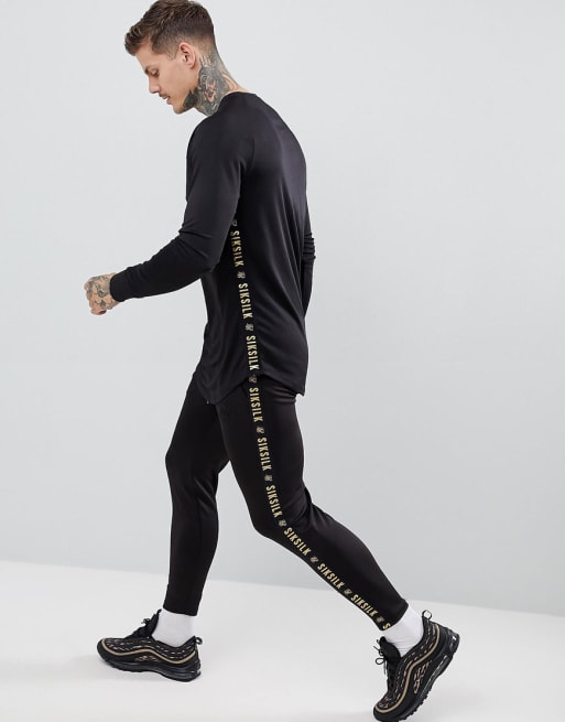 SikSilk - Tuta nera con riga laterale oro