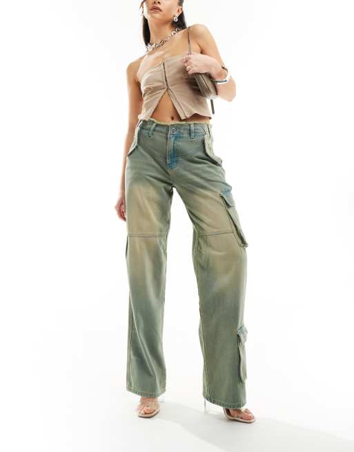 SIMMI - Jeans cargo a fondo ampio grezzo in denim lavaggio sabbia