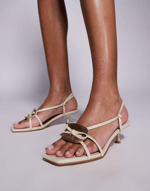 Simmi London - Scarpe con tacchetto a spillo color pietra con fascette sottili e punta squadrata a pianta larga