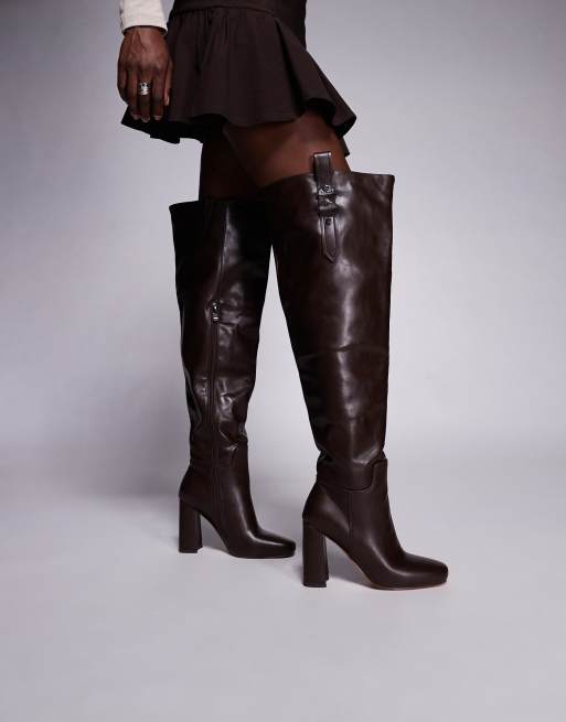 Simmi London Wide Fit - Harrieta - Stivali cuissard marroni con tacco a pianta larga
