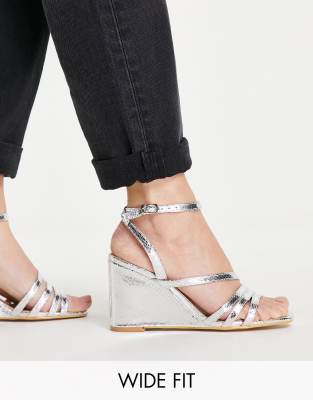 Simply Be Extra Wide Fit - Ava - Sandali argento con zeppe