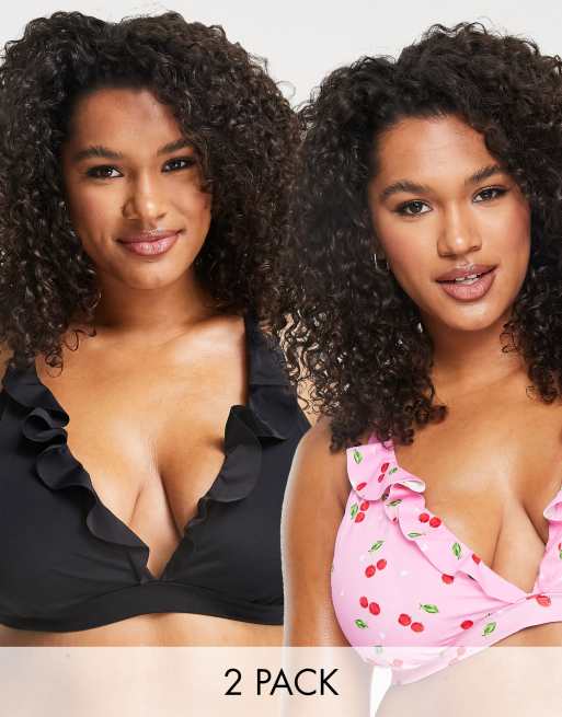 Simply Be - Confezione da 2 top bikini rosa con stampa di ciliegie e nero