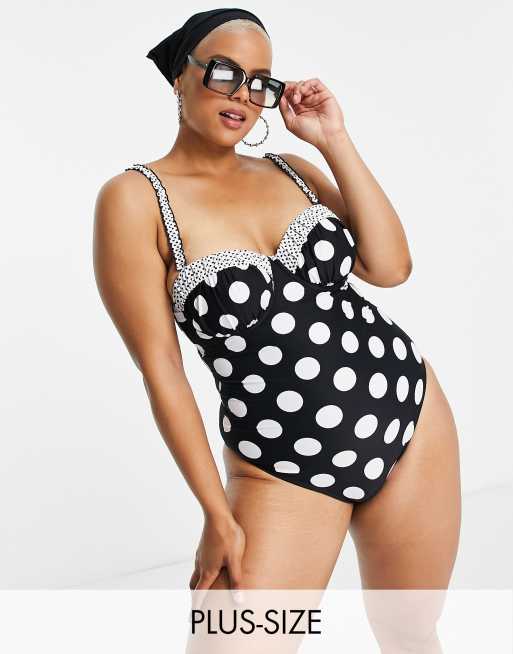 Simply Be - Costume da bagno a pois con ferretto
