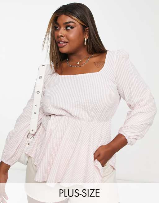 Simply Be - Top peplo con scollo squadrato rosa a quadri