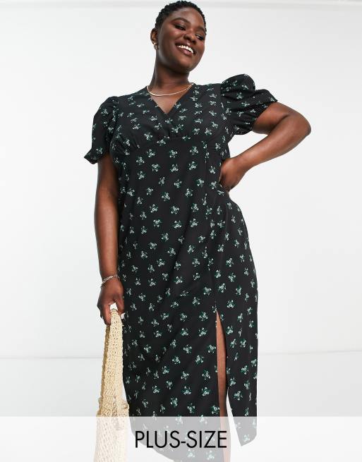 Simply Be - Vestito midi con spacco sul davanti nero a fiori