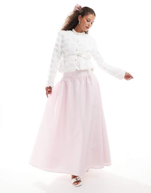 Sister Jane - Gonna al polpaccio rosa cipria con fondo allungato in coordinato