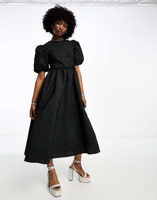 Sister Jane - Vestito con gonna al polpaccio oversize in jacquard nero