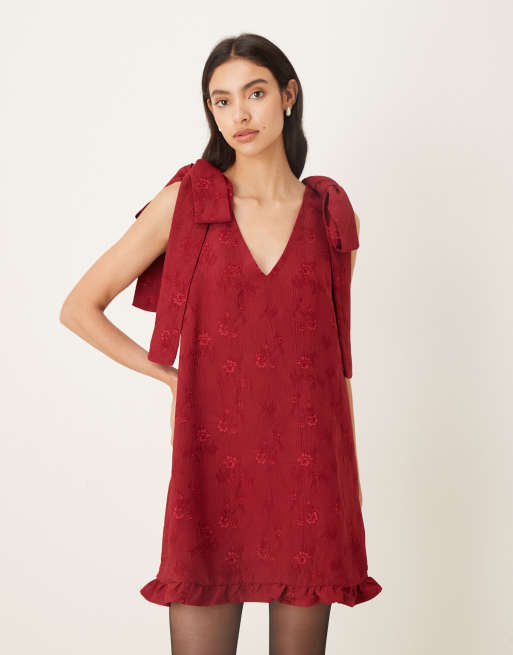 Sister Jane - Vestito corto rosso bacca con scollo a V, volant sul fondo e fiocchi sulle spalle