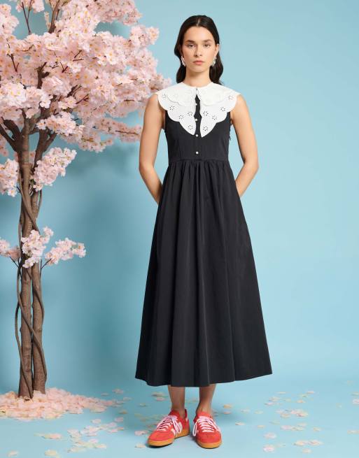 Sister Jane - Vestito midi nero con colletto rimovibile