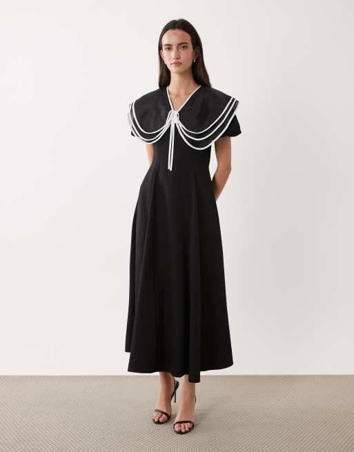 Sister Jane - Vestito midi nero con maniche a sbuffo e colletto oversize