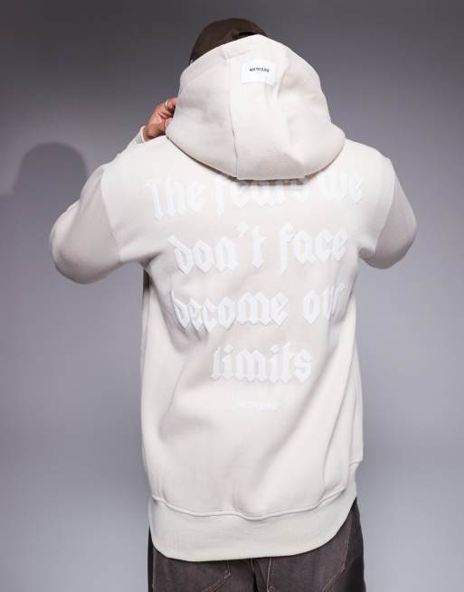 Sixth June - Felpa con cappuccio beige con stampa di citazione sul retro