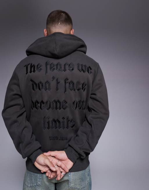 Sixth June - Felpa con cappuccio nera con zip e stampa di citazione sul retro
