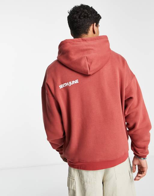 Sixth June - Felpa con cappuccio oversize bordeaux con logo