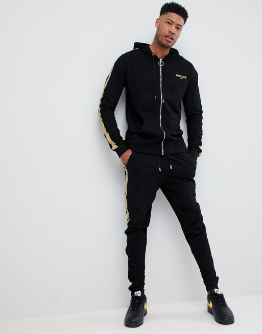 Sixth June - Tuta nera con riga laterale oro - In esclusiva per ASOS