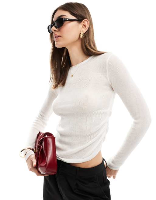 SNDYS - Top a maniche lunghe bianco in maglia sottile semitrasparente